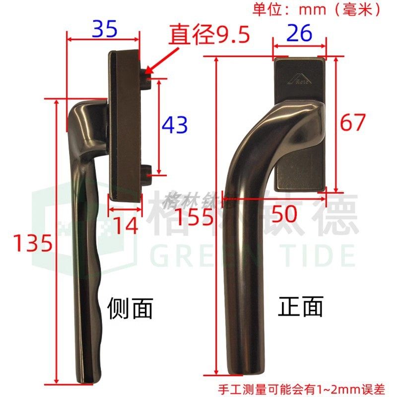 Roto平开窗歪把手塑钢门窗诺托传动执手窗纱一体扁执手左右拉手