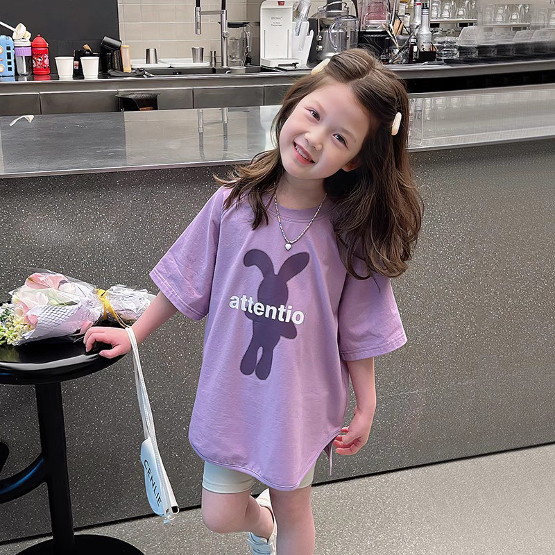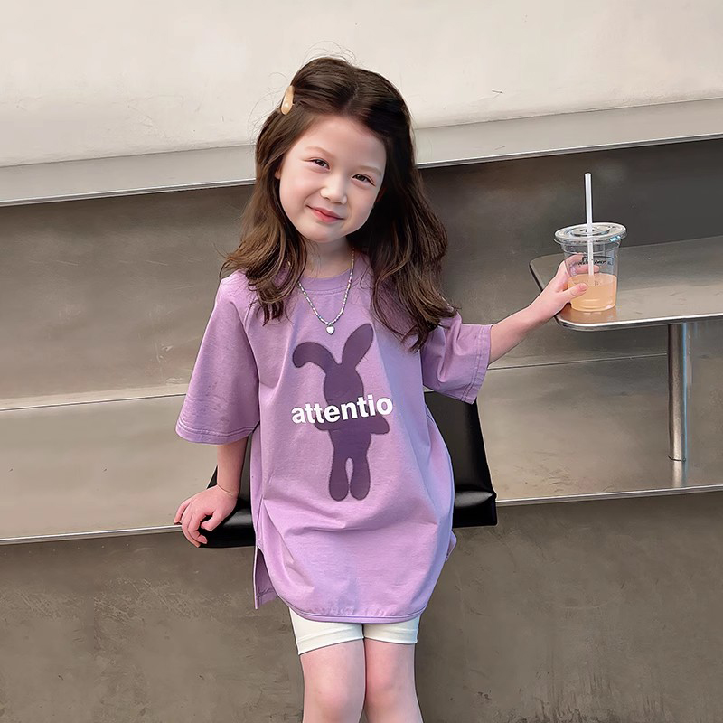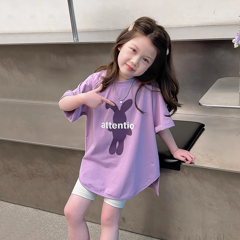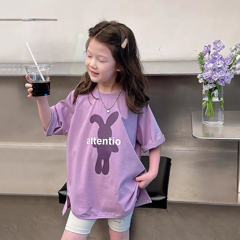 女童洋气半袖t恤儿童中袖宽松上衣中大童装网红短袖2024夏装新款