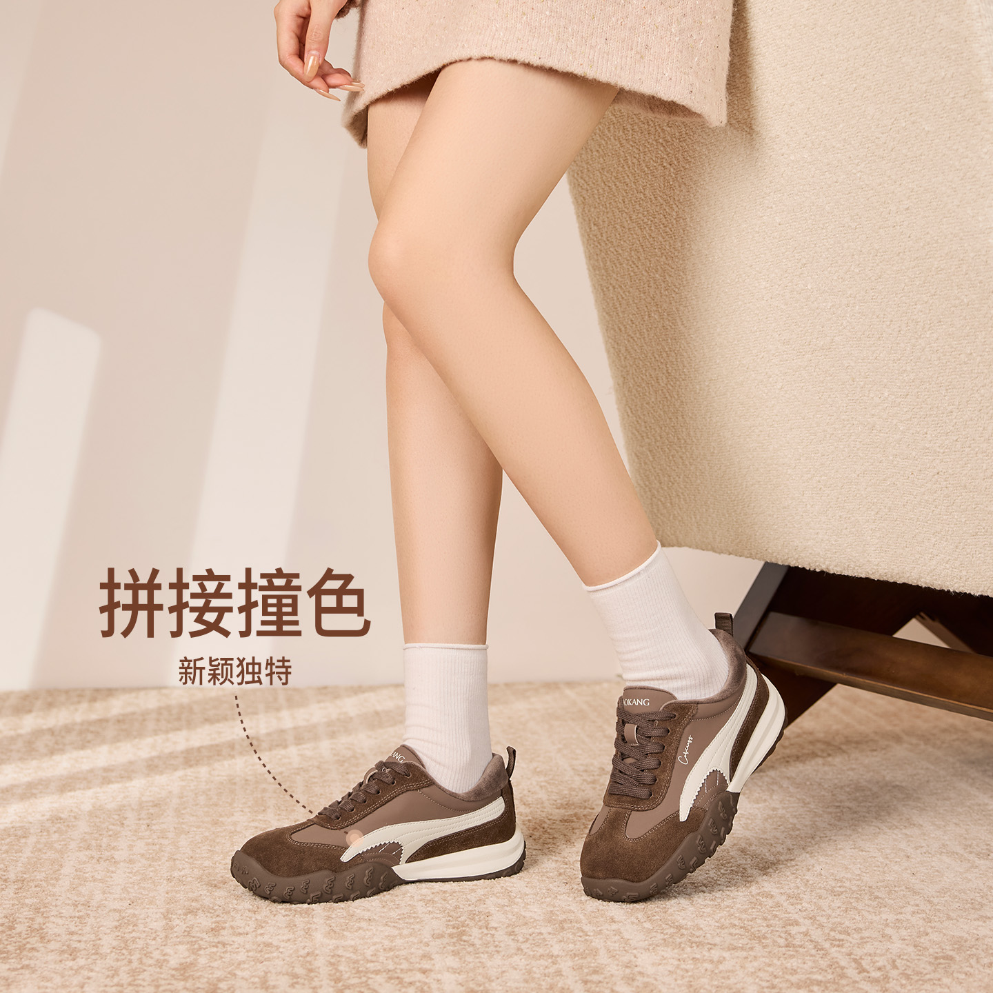 奥康 女鞋2025冬季德训韩系撞色加绒保暖潮流百搭休闲鞋门店发货
