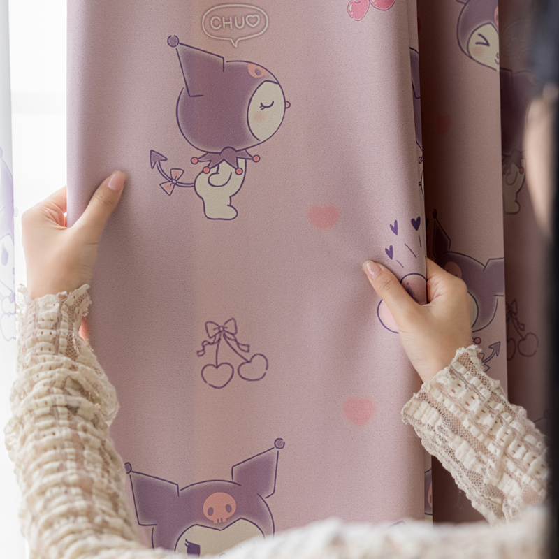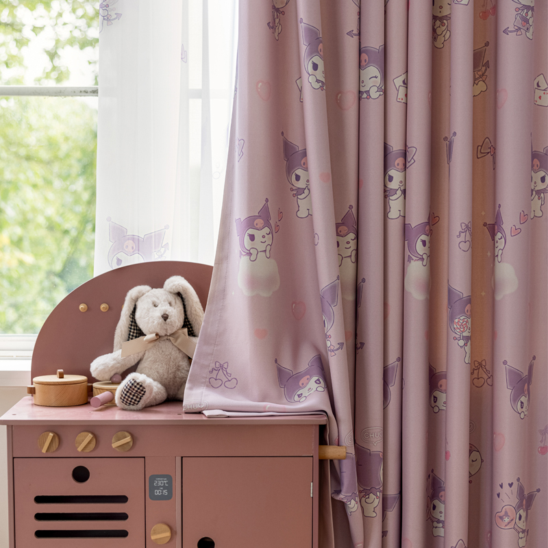 棉麻全遮光儿童卡通成品窗帘葡萄紫库洛米环保隔音印花定制飘窗帘