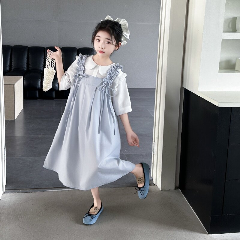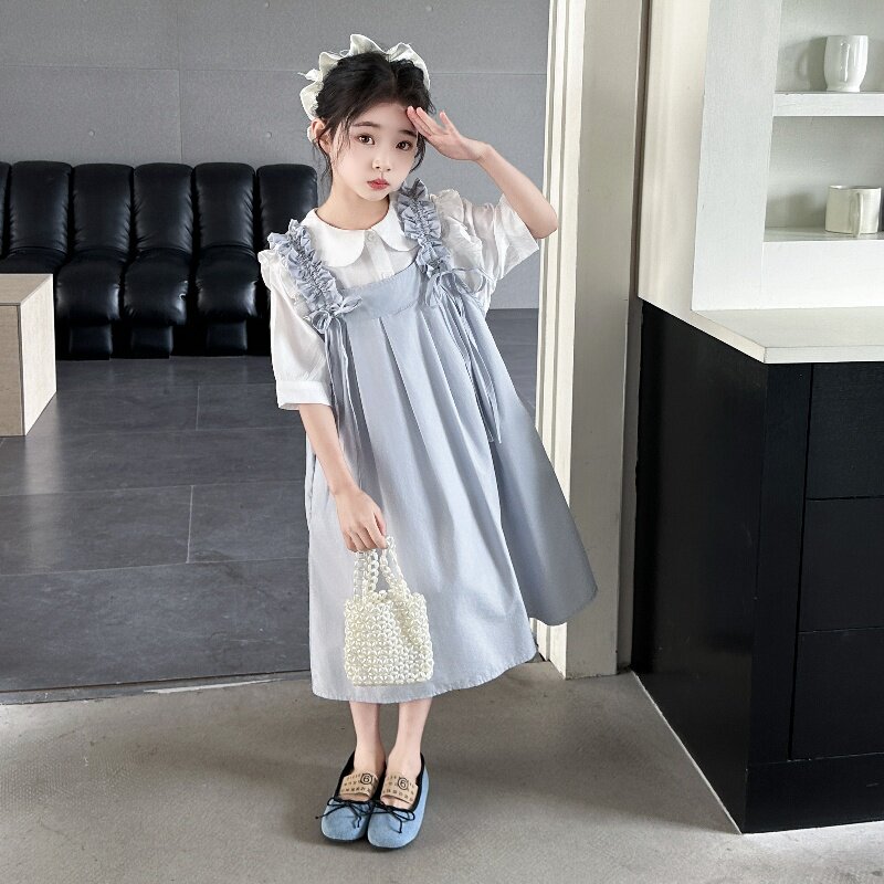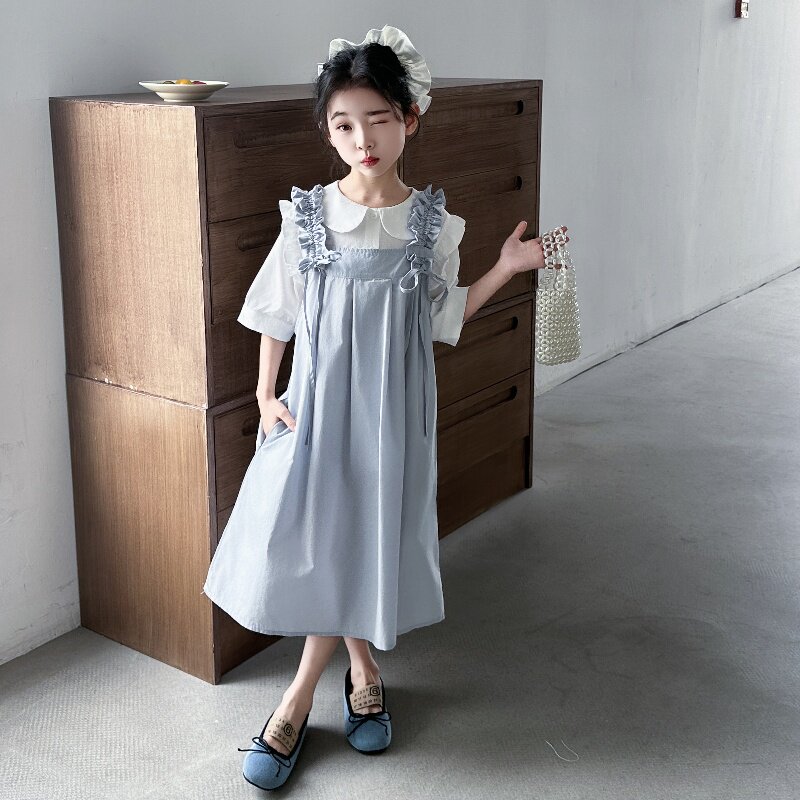 夏装女童连衣裙夏季2025新款洋气小女孩韩版背带裙套装学院风裙子