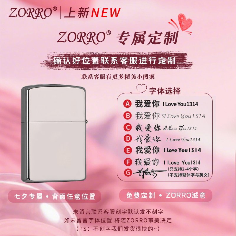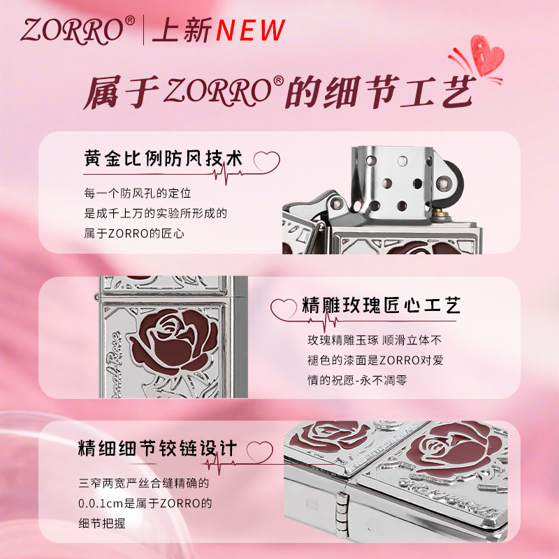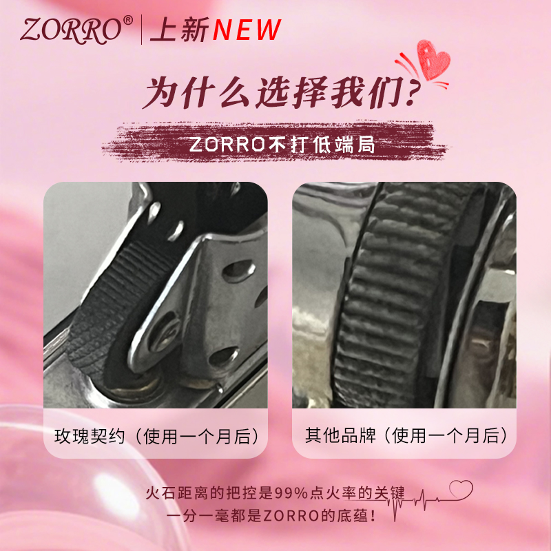 ZORRO佐罗官方旗舰店玫瑰契约煤油复古打火机高颜值节日送礼男友