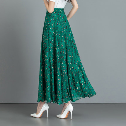 雪纺半身裙夏薄款2025新款高腰显瘦碎花a字裙气质优雅大摆长裙子