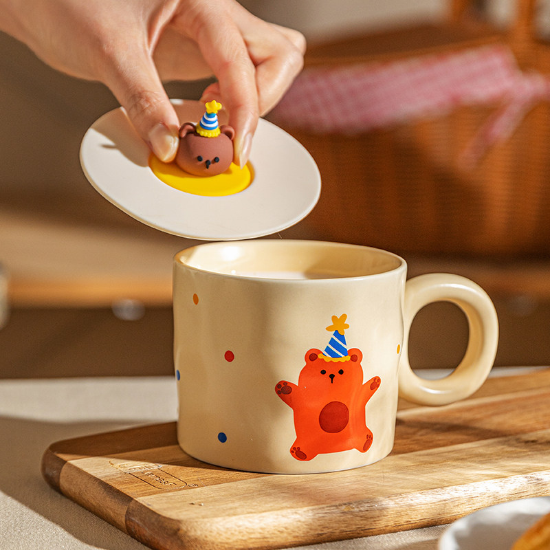 摩登主妇动物派对马克杯带盖陶瓷杯子办公室水杯早餐杯情侣咖啡杯