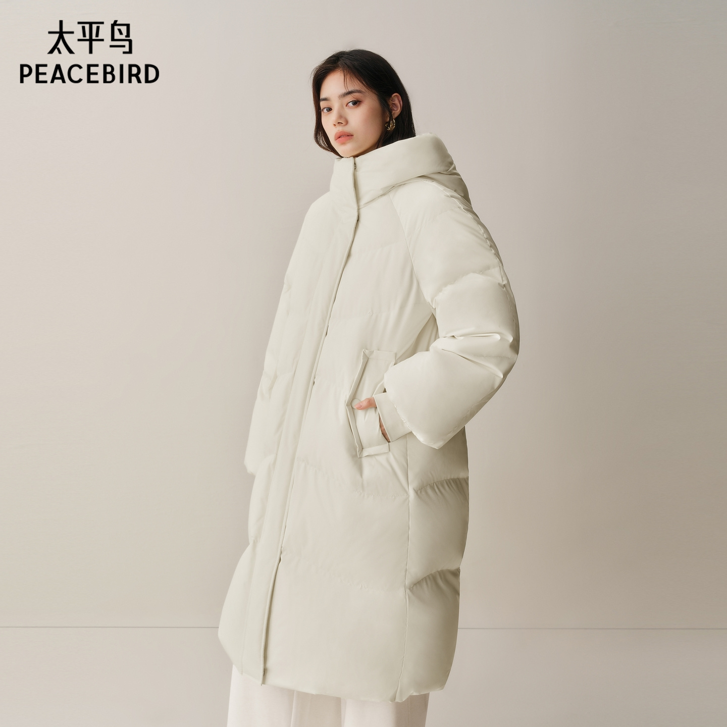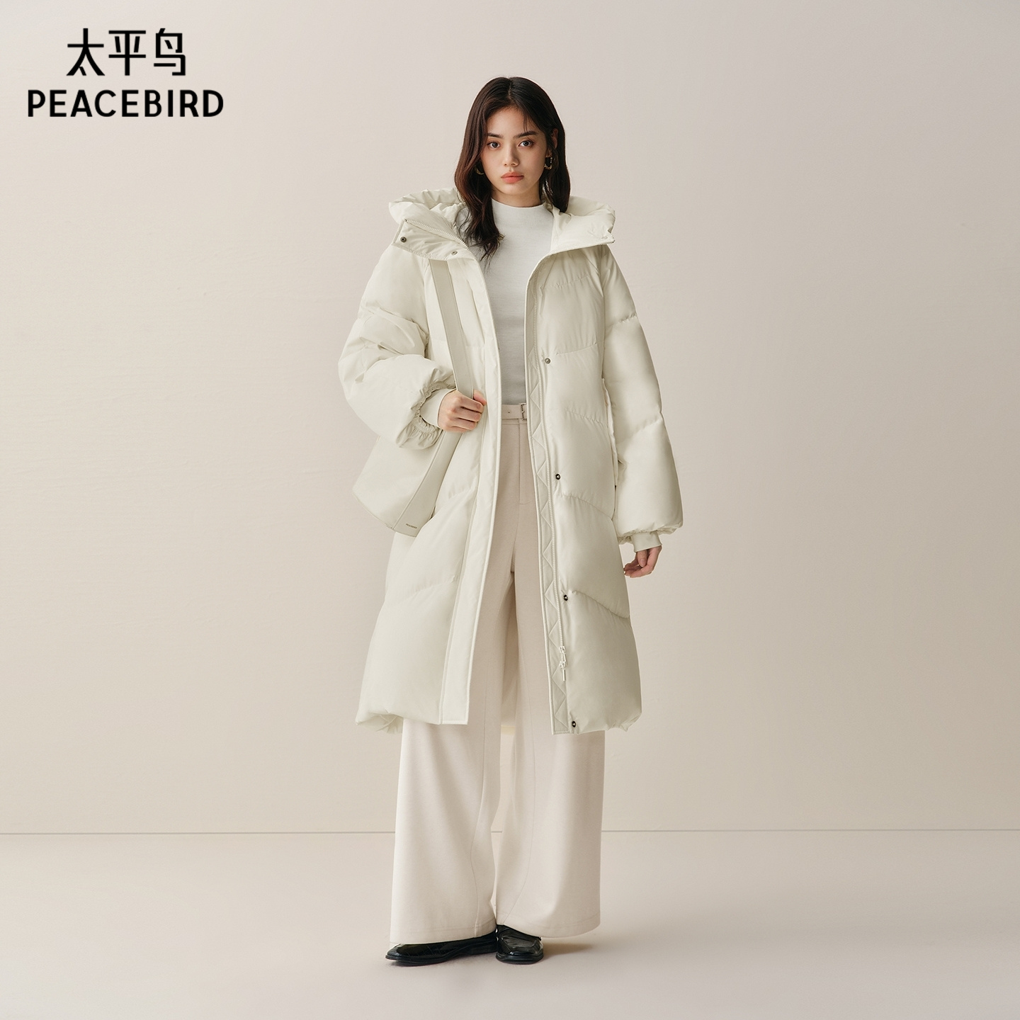 太平鸟白色御寒中长款羽绒服外套女2025年新款面包服90白鸭绒外套