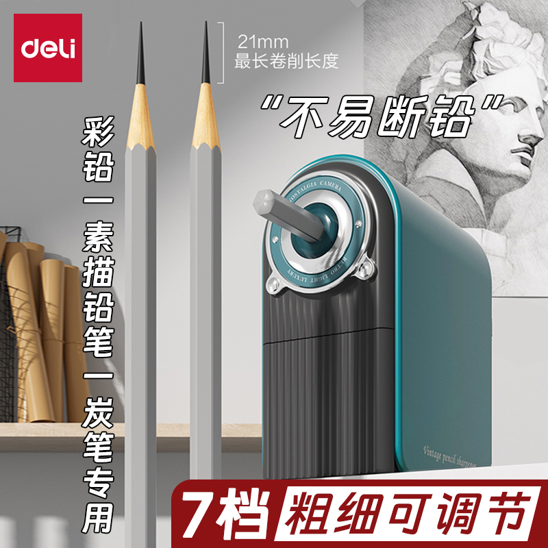 得力速写卷笔刀素描削笔器转笔刀炭笔美术生专用艺考便携式刨笔机儿童铅笔刀手摇削笔刀转笔刀小学生削笔机