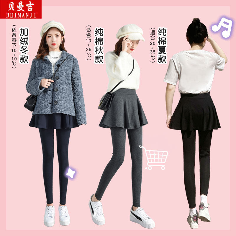 假两件打底裤女加绒加厚保暖外穿显瘦纯棉高腰裙裤春秋冬季带裙子