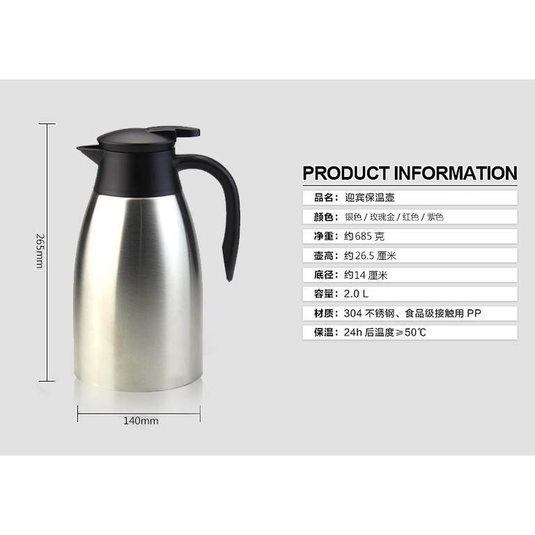 迎宾保温壶瓶子杯暖壶304不锈钢办公2L大容量服务热水壶家用商用