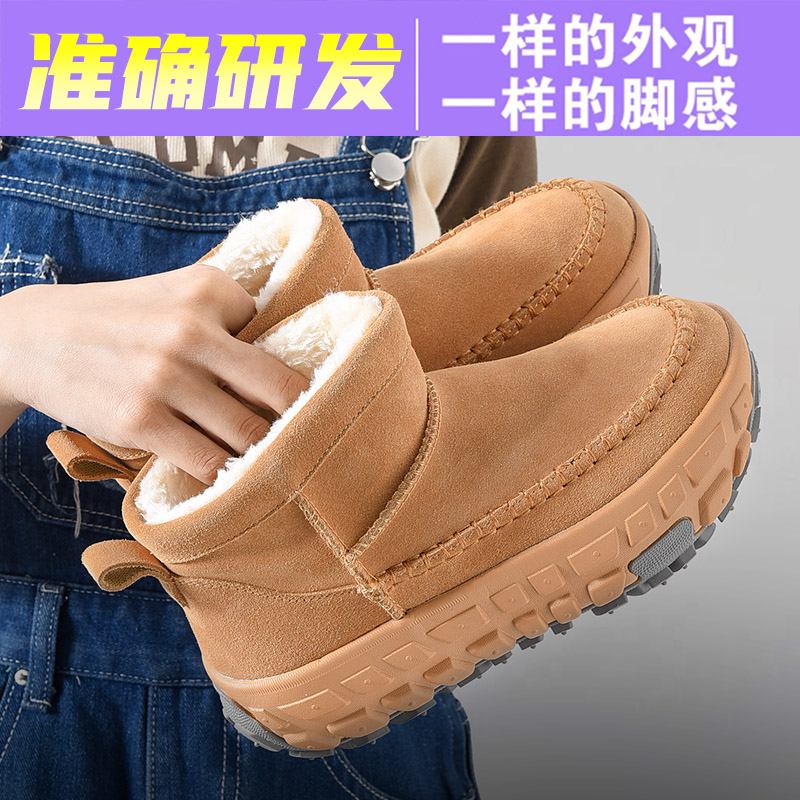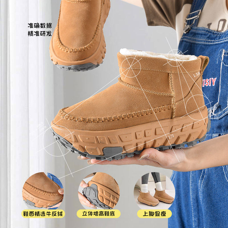 桑坡厚底加绒雪地靴秋冬新款坦克底防滑短靴东北户外耐寒棉鞋男女