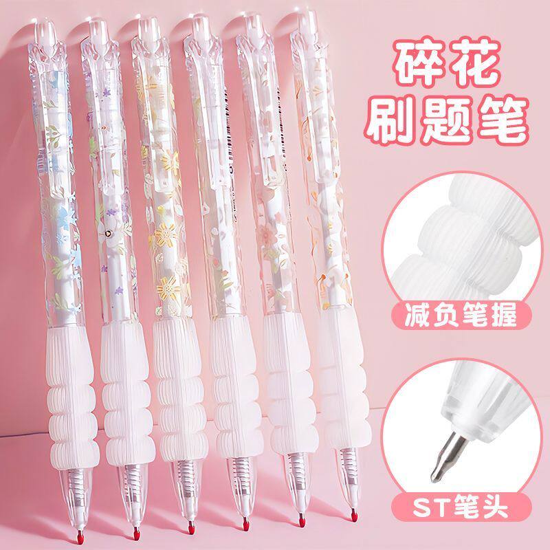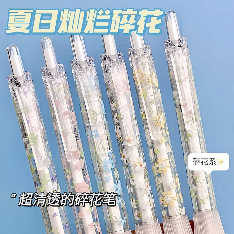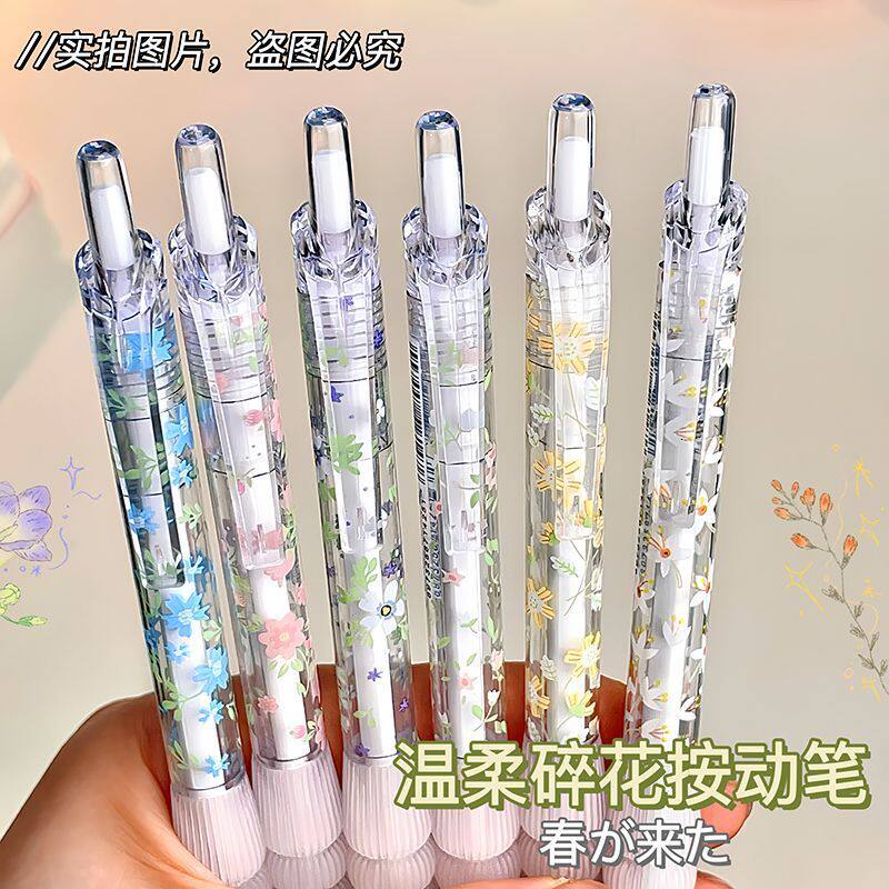 升级款小碎花限定学生按动笔isn高颜值花系中性笔书写刷题专用笔