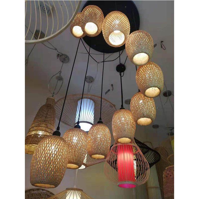 和龙汪清安图个性卧室灯具竹编球形吊灯中式吊灯竹编鸟巢鸟笼竹灯