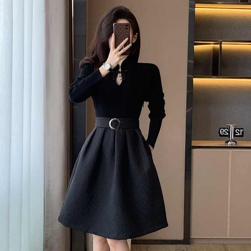 新中式国风黑色连衣裙女秋季2025新款小香风名媛收腰显瘦气质裙子