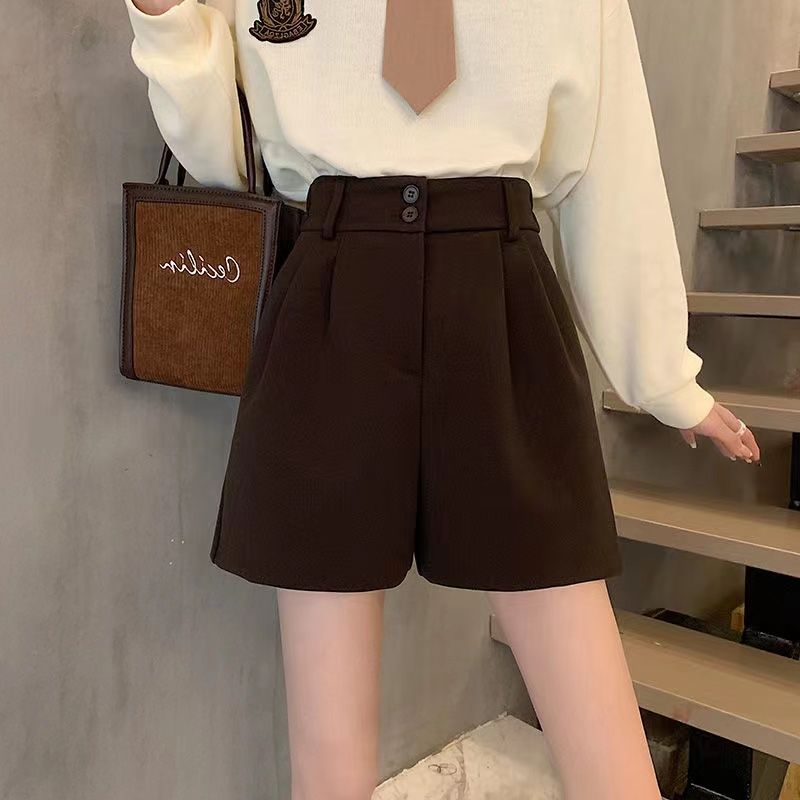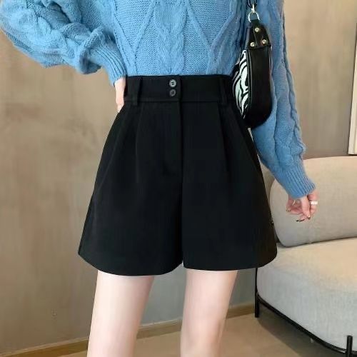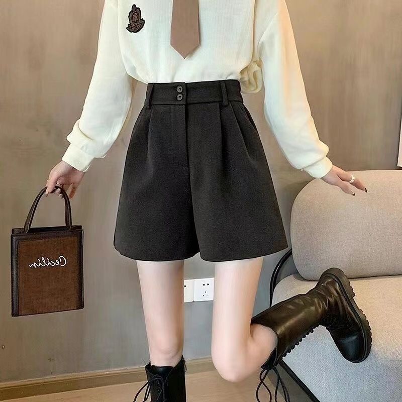 毛呢短裤女秋冬外穿2023年新款高腰显瘦A字百搭时尚ins阔腿靴裤子