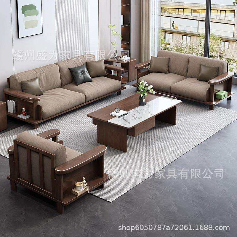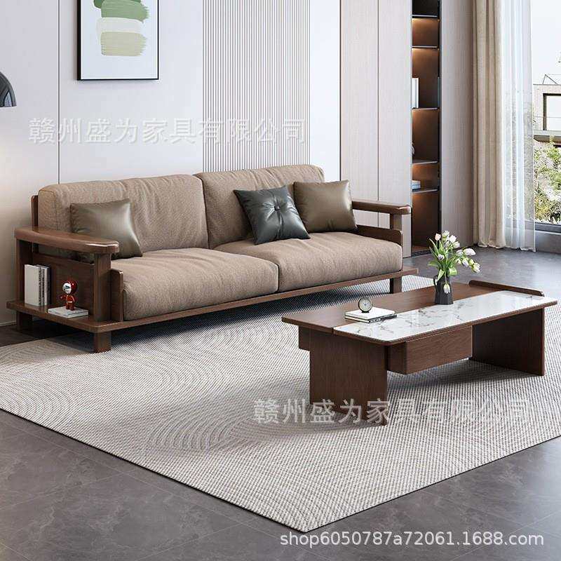 黑胡桃木实木沙发组合客厅家用大小户型简约现代成套家具沙发