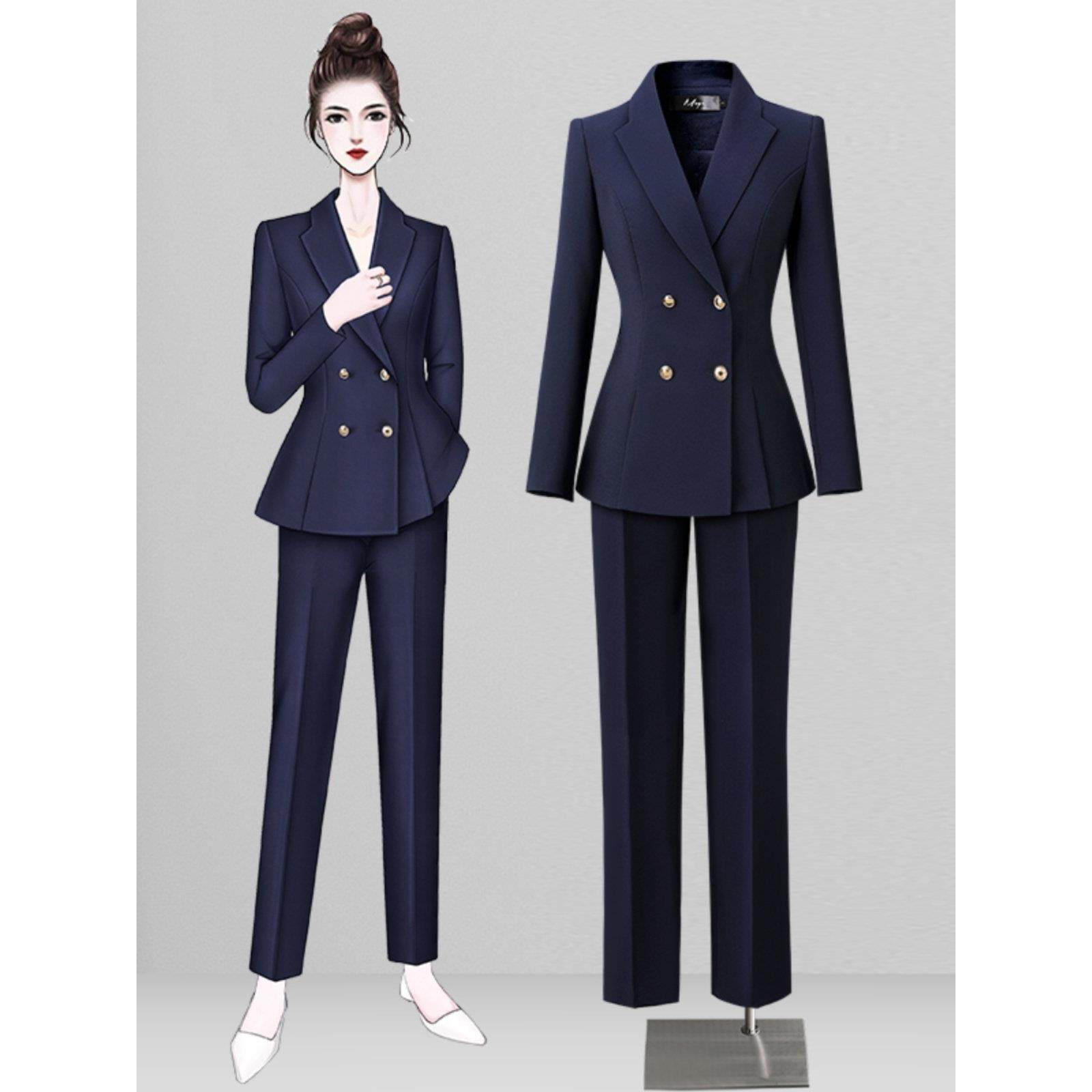 双排扣设计感职业西装套装春秋气质修身职场工作服酒店珠宝店工装