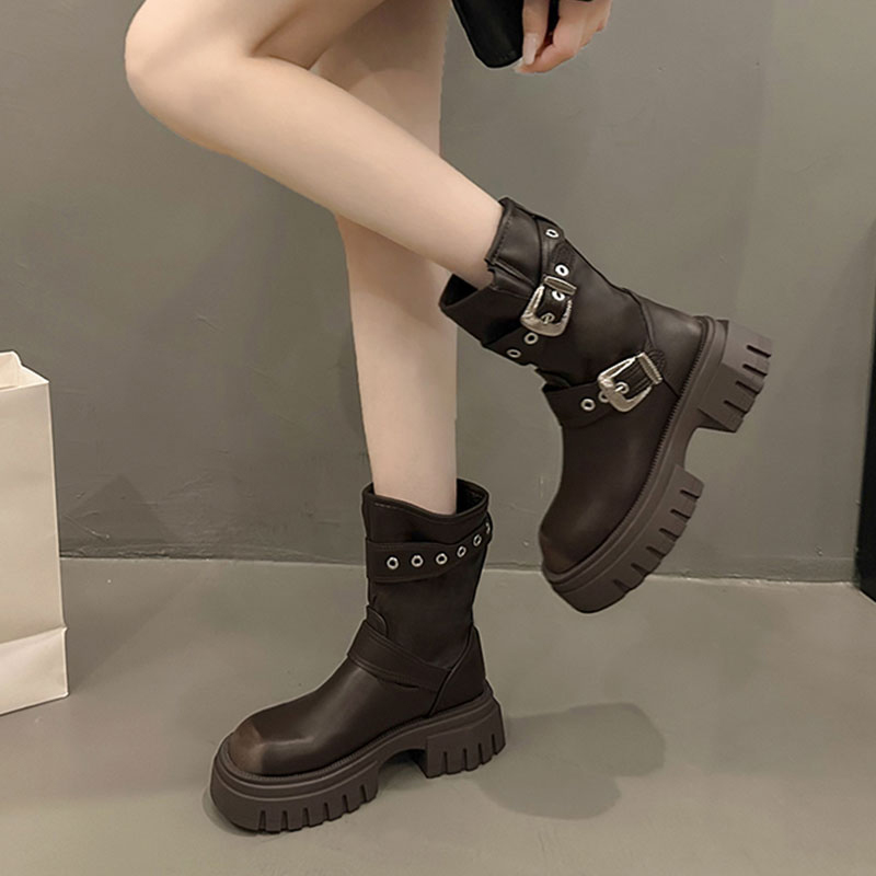 美拉德厚底复古马丁靴女款2024新款秋冬季英伦风西部牛仔短筒靴子