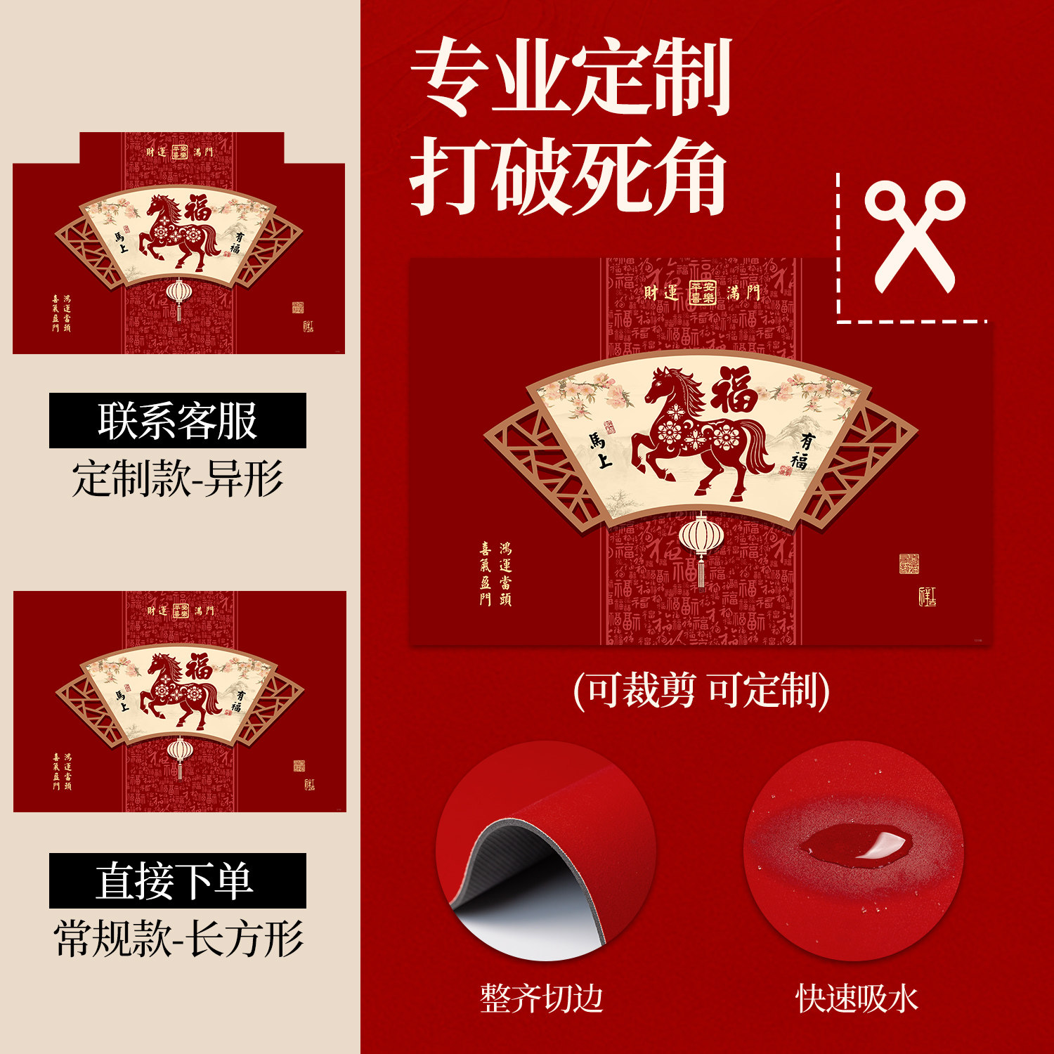 马年红色入户门中式喜庆室内地毯
