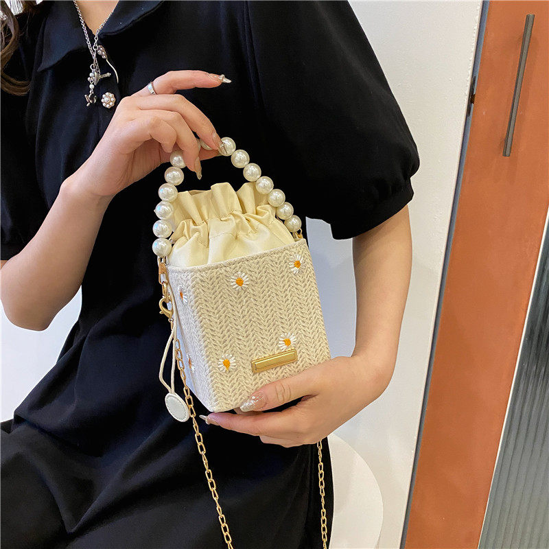 森系简约百搭甜美蕾丝少女斜挎包2022新款潮迷你百搭珍珠小方包女