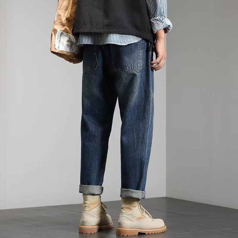 日系复古牛仔裤男宽松直筒大码工装休闲裤春秋季潮牌高街痞帅长裤