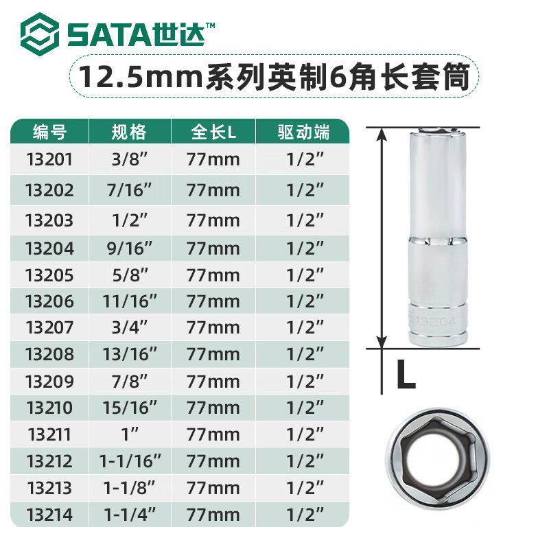 世达(SATA)大飞英制套筒内六角套头加长加厚套筒扳手工具