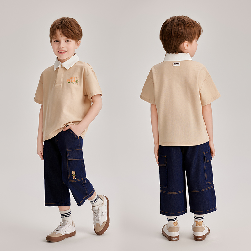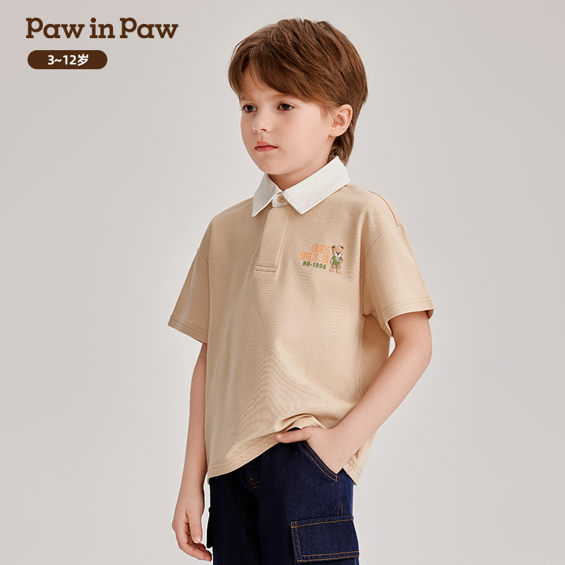PawinPaw卡通小熊童装夏季男童撞色polo领短袖T恤纯棉