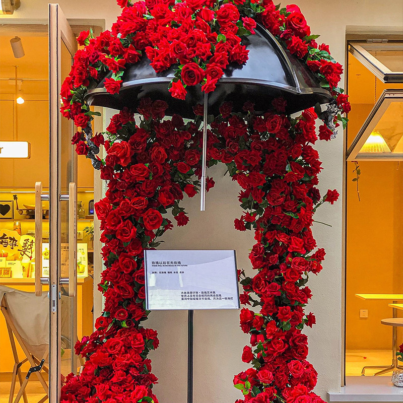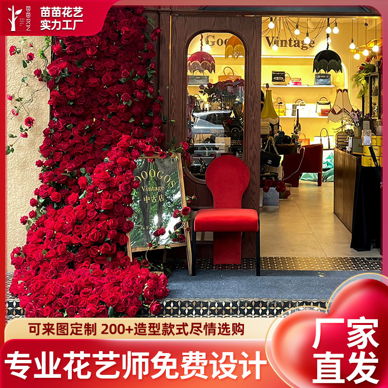 现货网红花墙仿真花玫瑰瀑布假花拍照道具店门头装饰摆件背景花束
