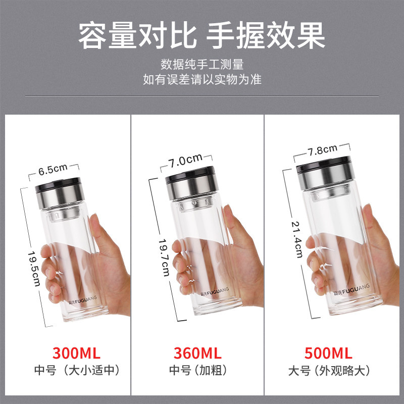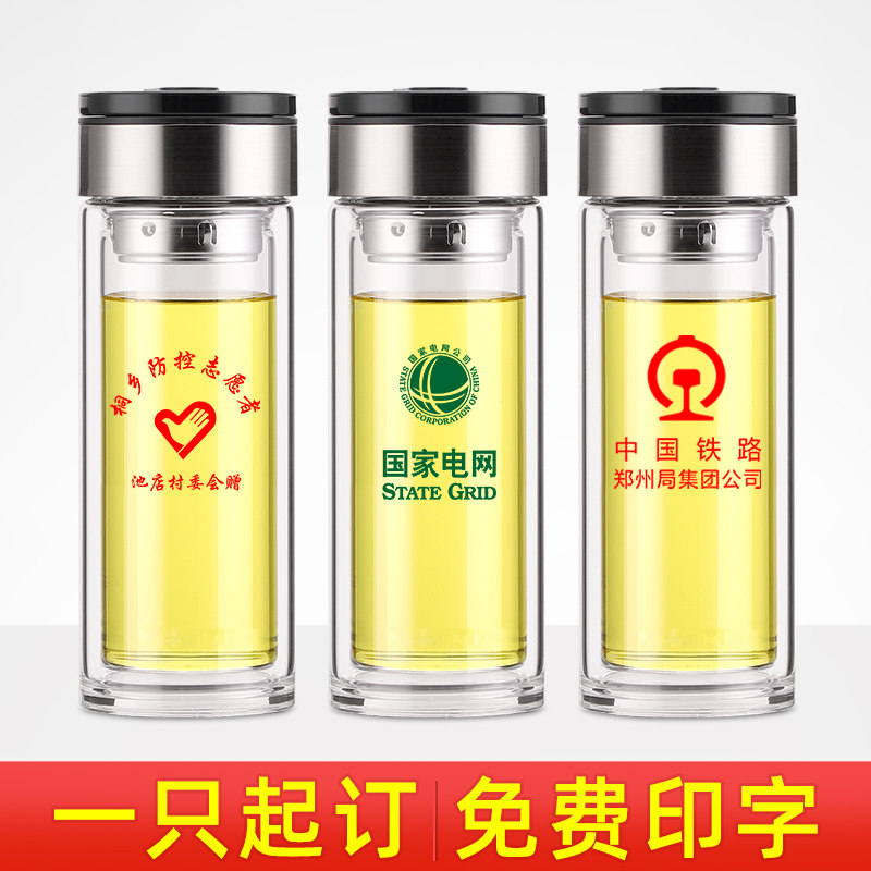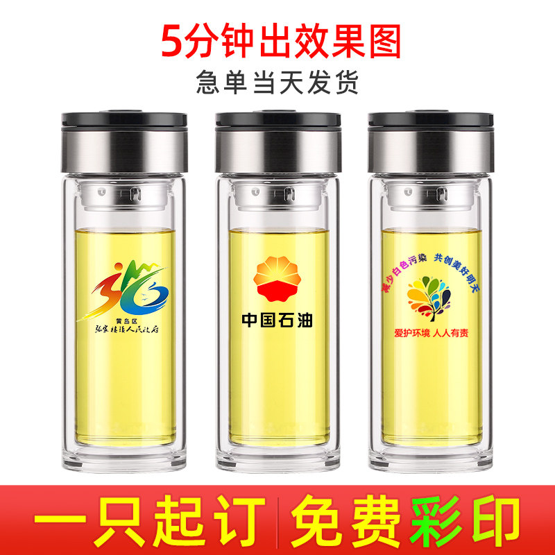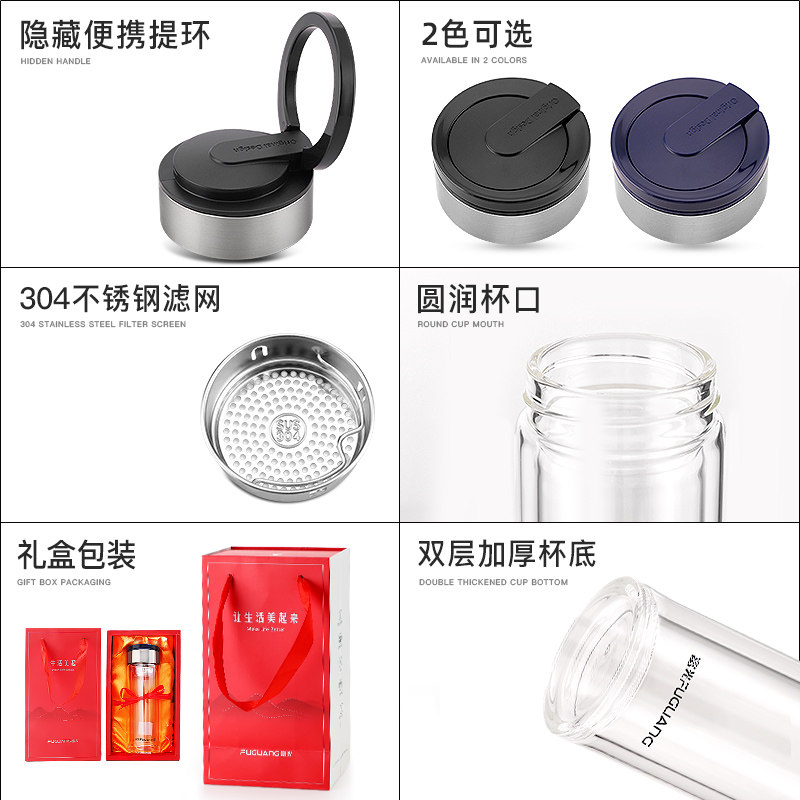 富光双层玻璃杯定制水杯印logo便携提环礼盒装茶水分离茶杯子订制