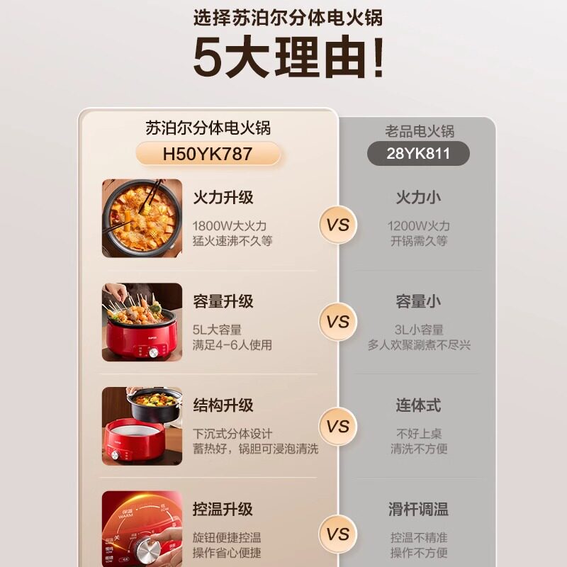 苏泊尔电火锅家用多功能分体式电火锅电热锅学生宿舍电煮锅猛火锅