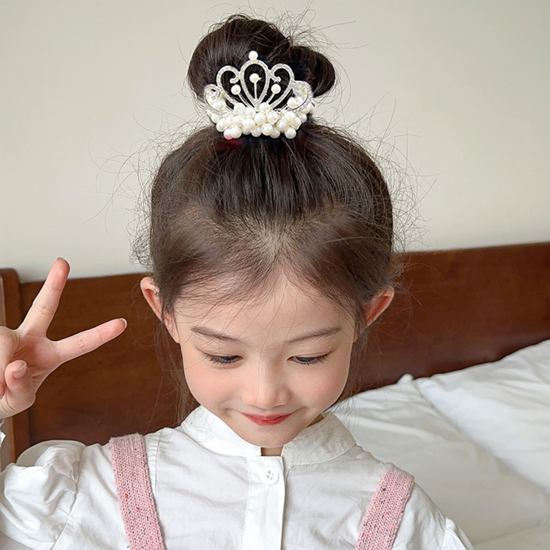儿童珍珠发圈头绳女童皇冠头饰公主皮筋女扎头可爱头花丸子头发绳