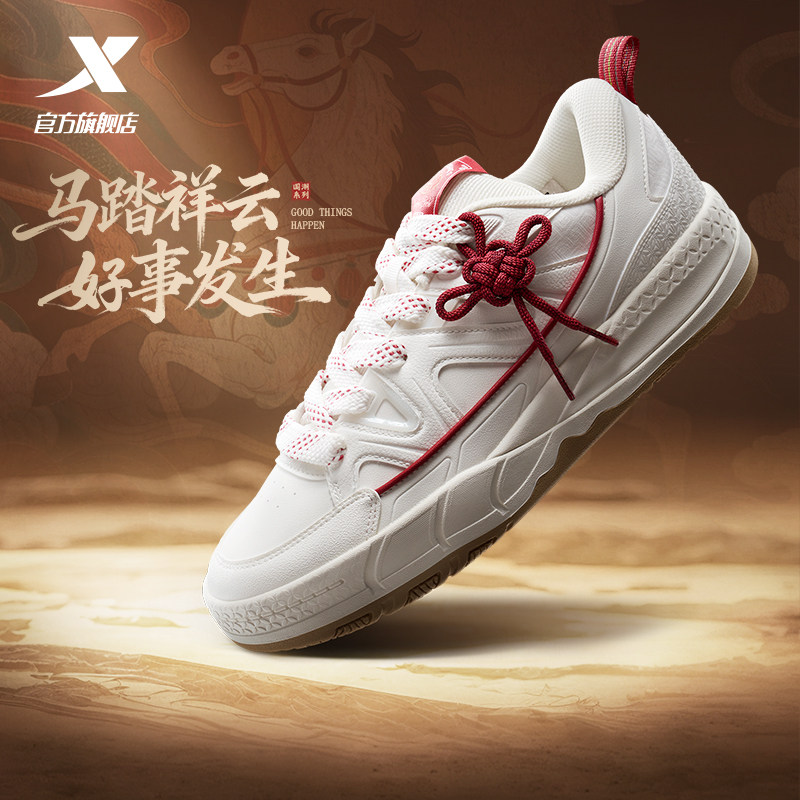 特步好事发生丨新年红色板鞋男鞋冬季新款厚底休闲鞋子运动鞋女鞋