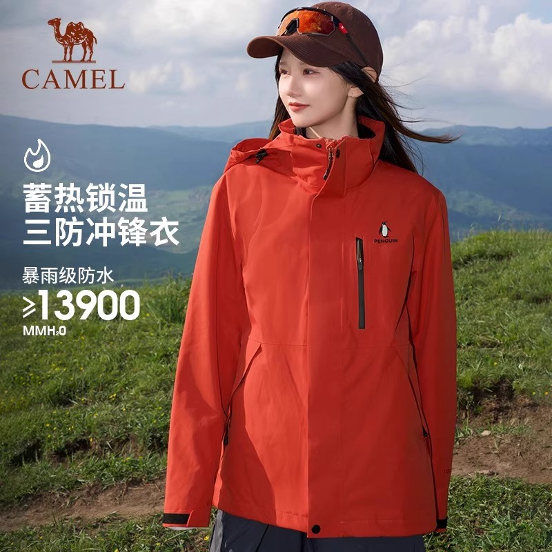 骆驼户外企鹅抓绒三合一冲锋衣男女2025年秋冬户外防风外套夹克
