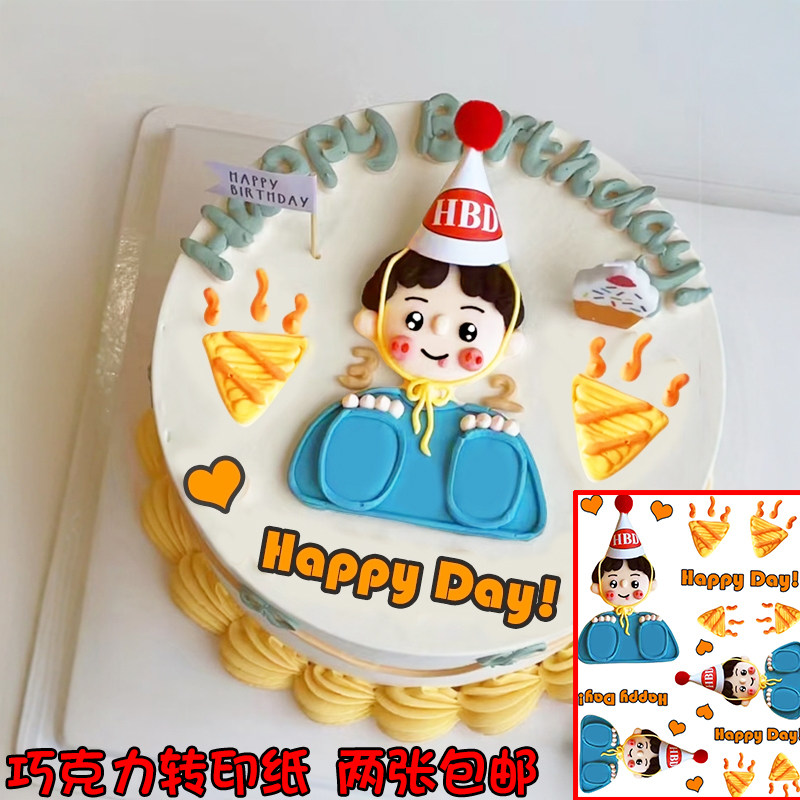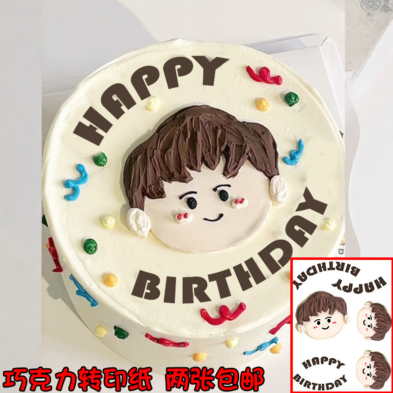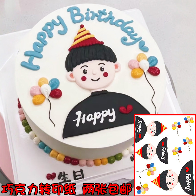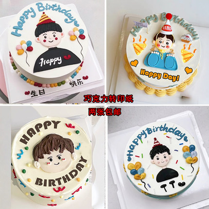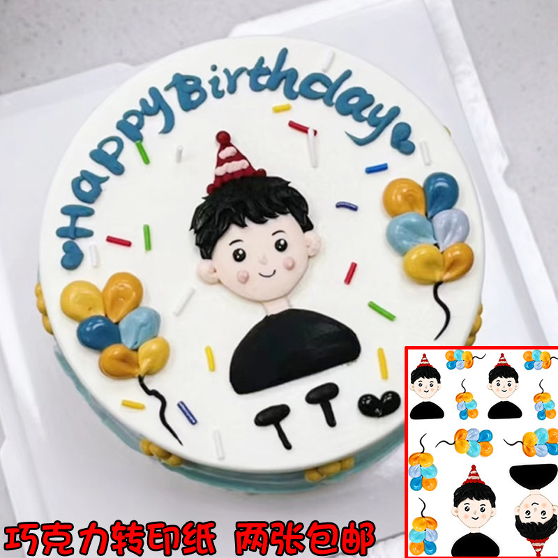 小红书手绘男生日蛋糕装饰我的男孩巧克力转印纸男头像烘焙用纸