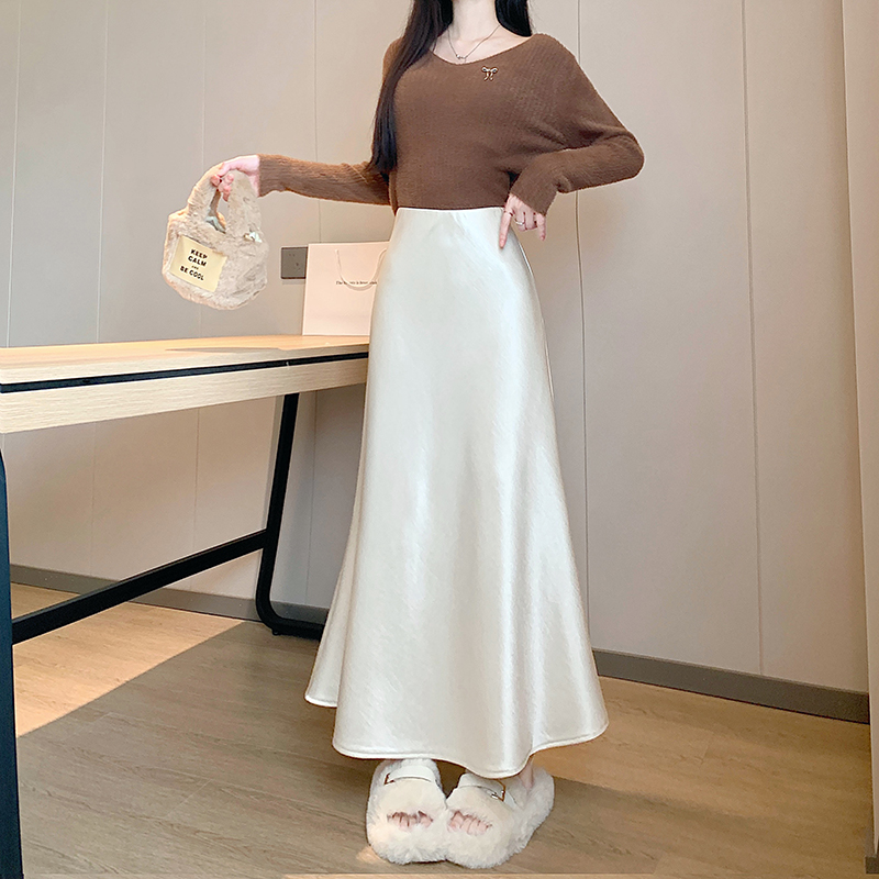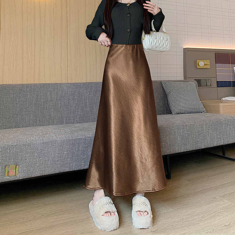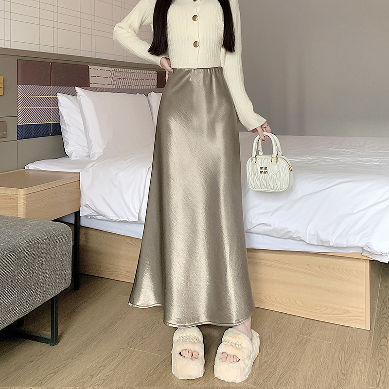 实拍2025网红高级醋酸缎面鎏金亲肤加绒半身裙包臀鱼尾裙长裙
