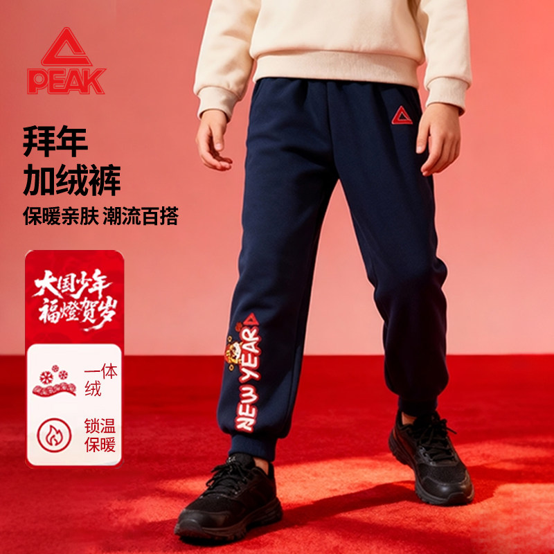 匹克童装男童一体绒裤子冬季儿童加厚长裤马年中大童加绒运动卫裤