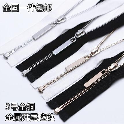 高档3号金属拉链 亮银色浅金细齿拉锁 皮衣夹克黑白色铜批拉链发