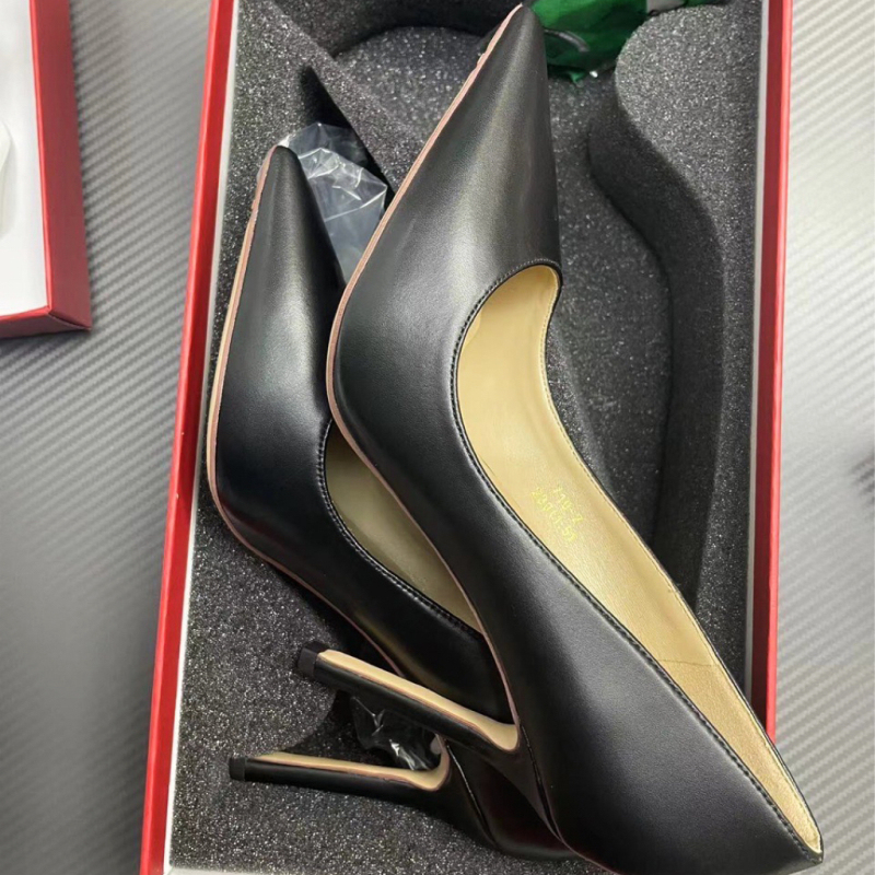 法式黑色高跟鞋细跟羊皮