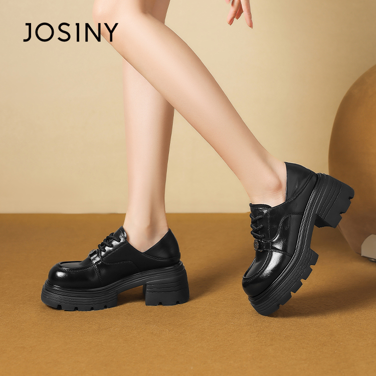 卓诗尼2025年夏季新款英伦风乐福鞋增高复古皮鞋女深口鞋
