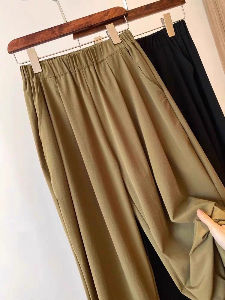 大码冰丝速干裤女2025新款夏季薄款九分直筒胖mm宽松透气休闲裤