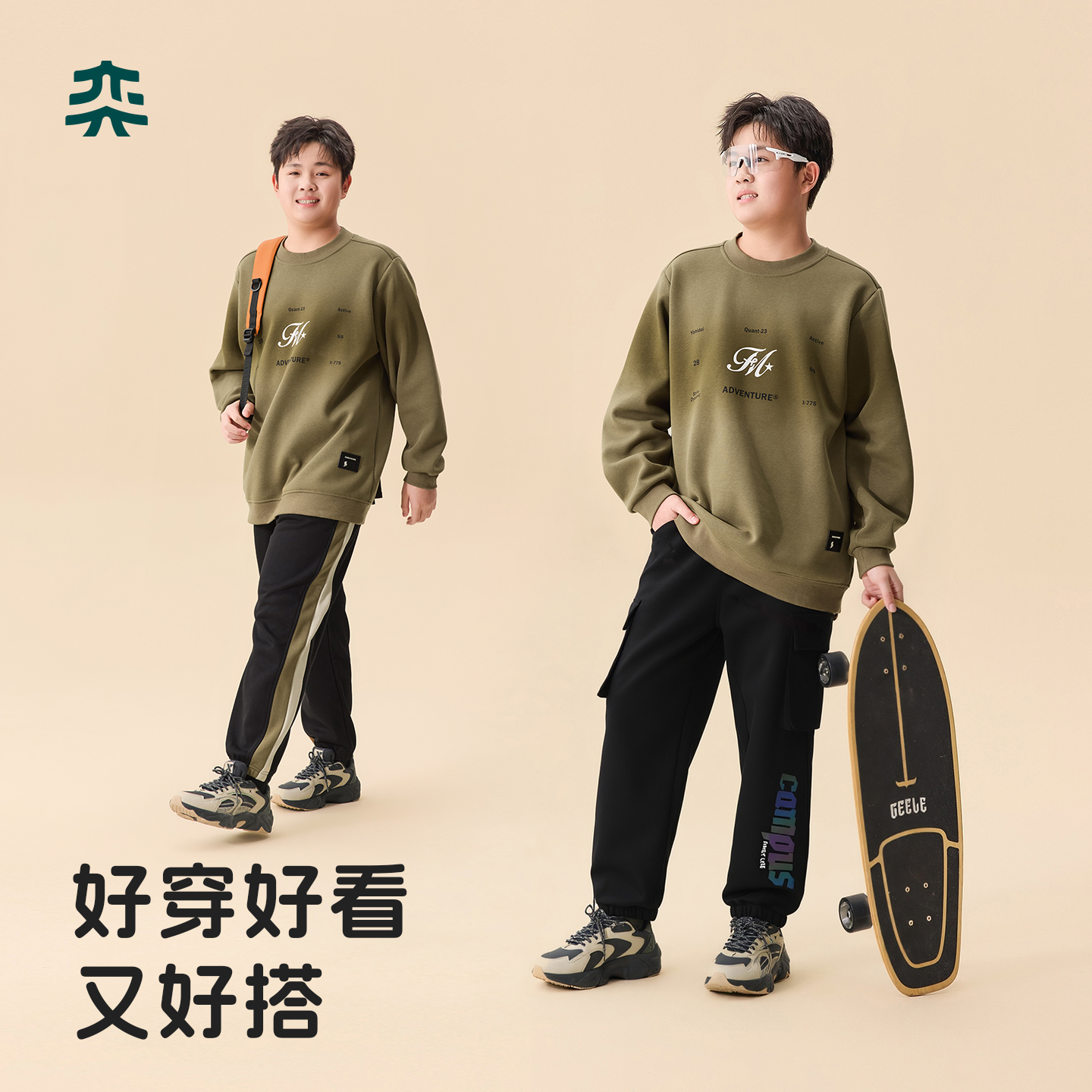 【10A太阳绒卫衣】奕时代胖男童加绒卫衣秋冬中大童抑菌上衣大码