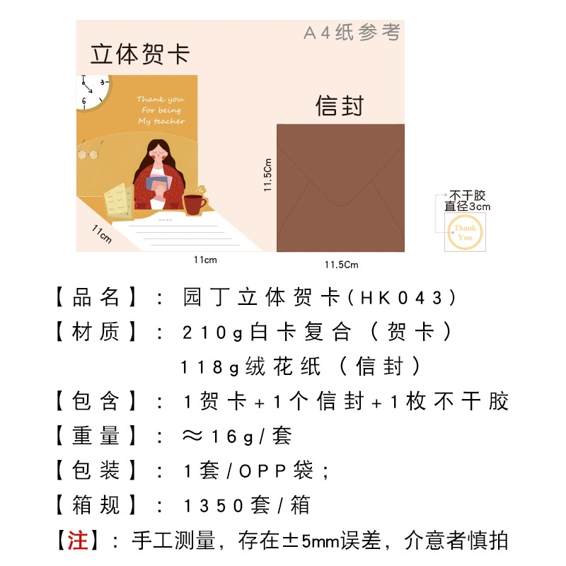 教师节立体折叠贺卡园丁系列3d高级感节日祝福礼物贺卡开学季感谢师恩感恩卡原创设计9.10送老师方形卡片信封