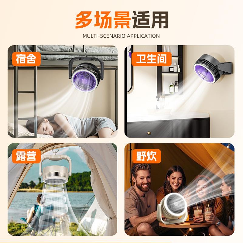 风扇便携式户外商行桌面风扇家用宿舍小风扇多功能夜灯可摇头风扇