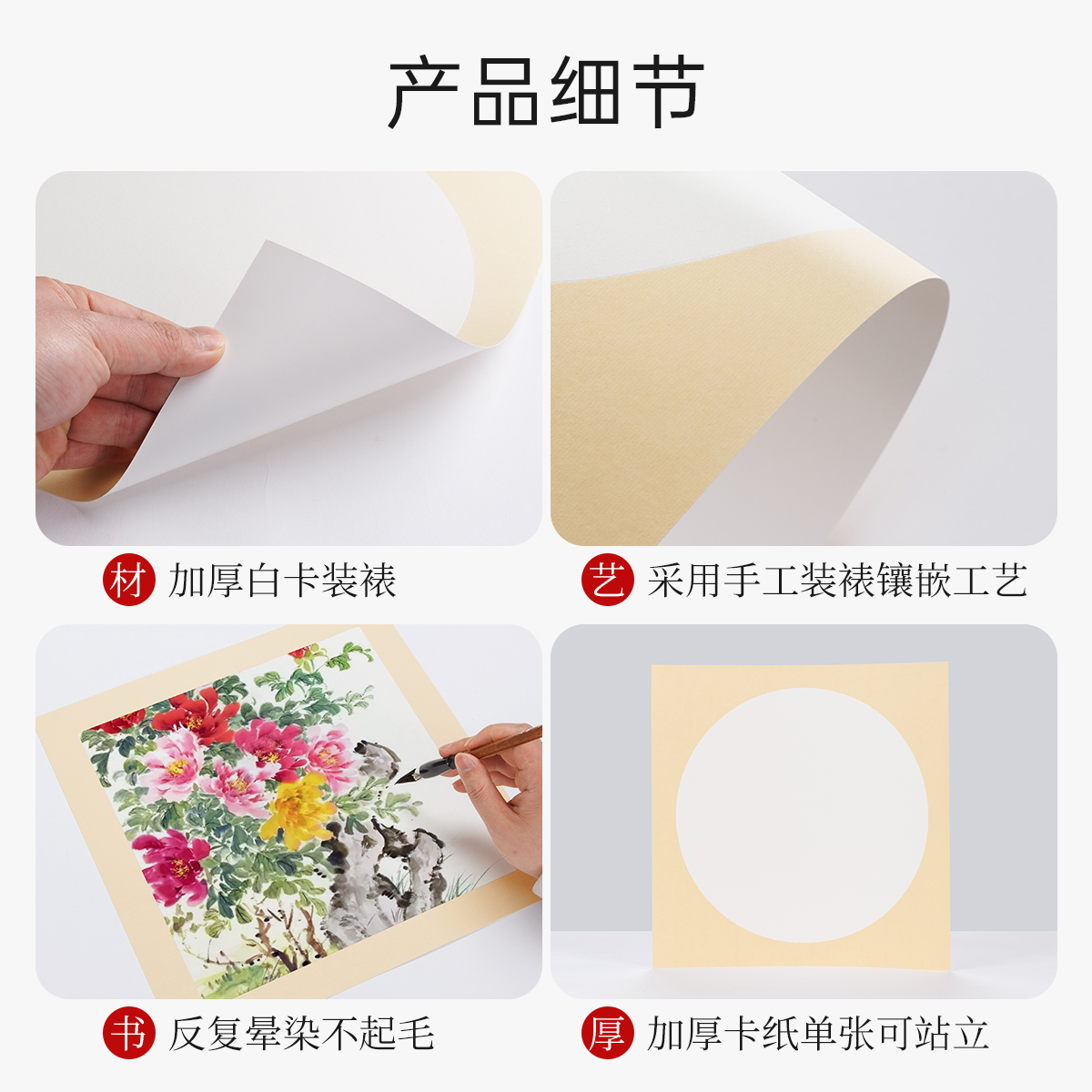 国画卡纸镜面宣纸生宣熟宣半生熟绘画作品书法专用生宣纸外方内圆毛笔美术初学者半熟画画纸空白练习镜片圆形