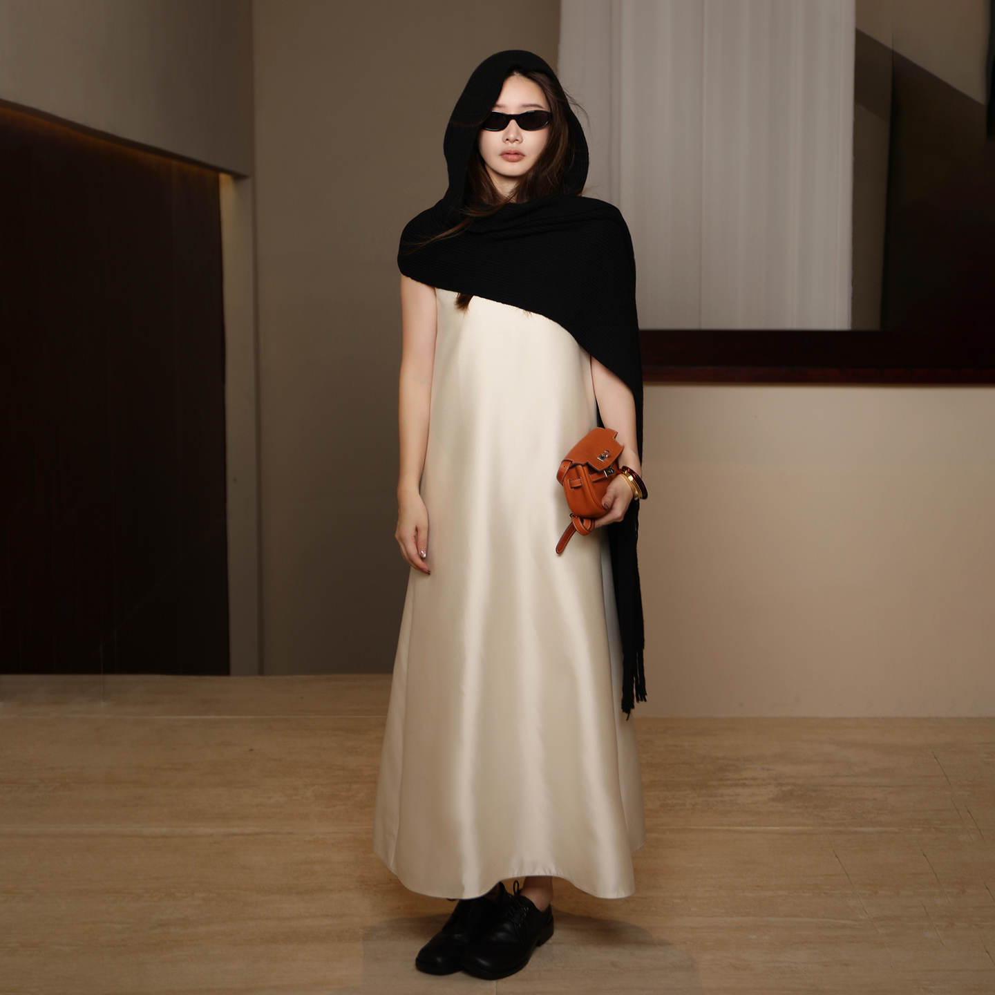 CHU楚妞[光琏]真丝羊毛珠光长款连衣裙2025秋季新款女轻奢裙子