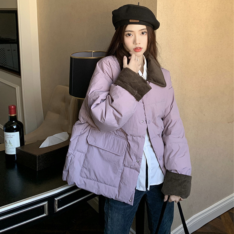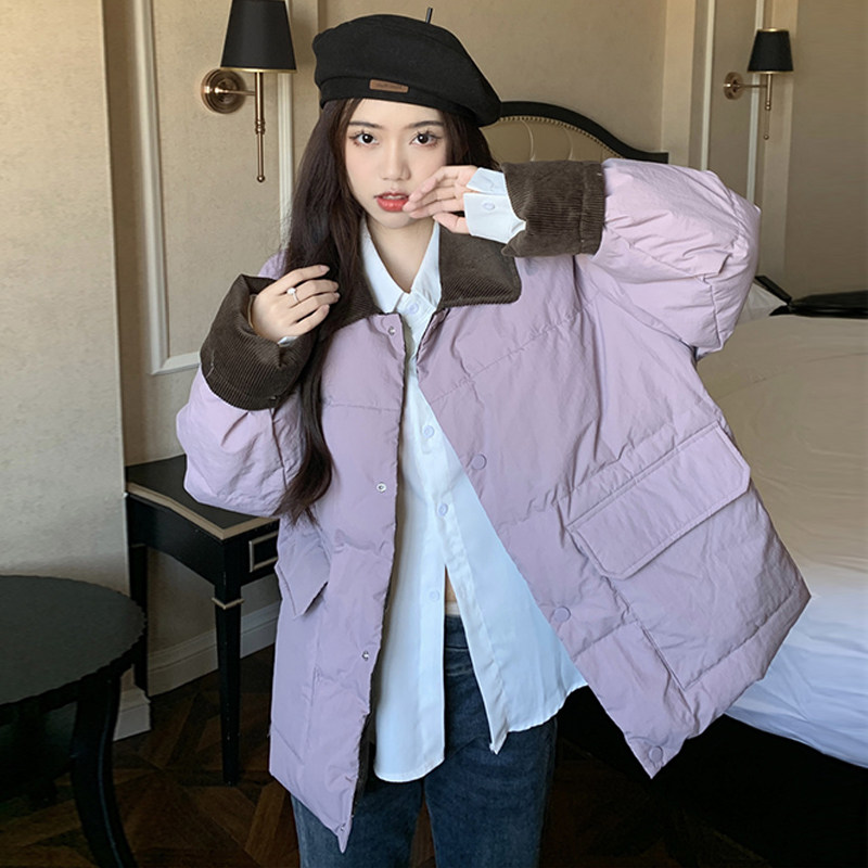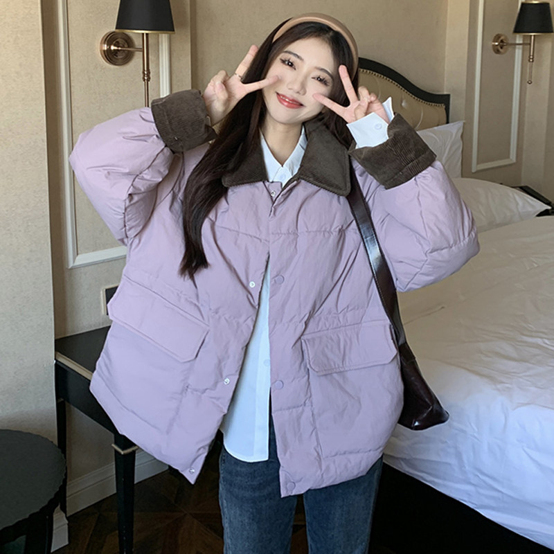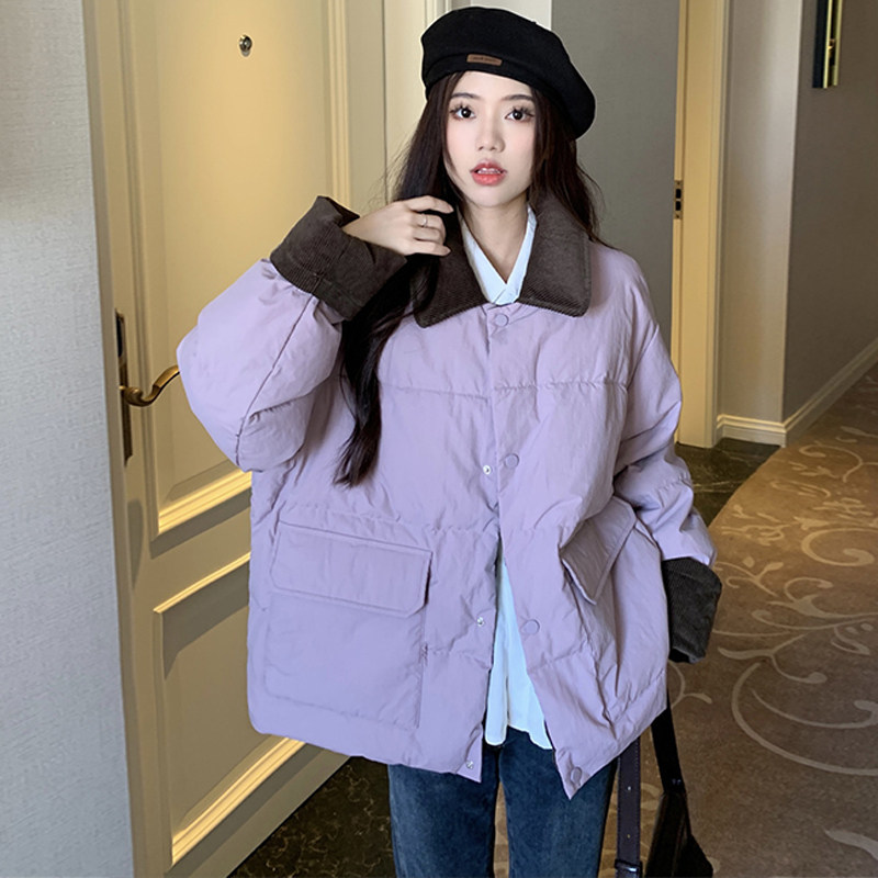 大码女装2025冬季新款胖mm韩版宽松简约紫色加厚棉衣棉服保暖外套