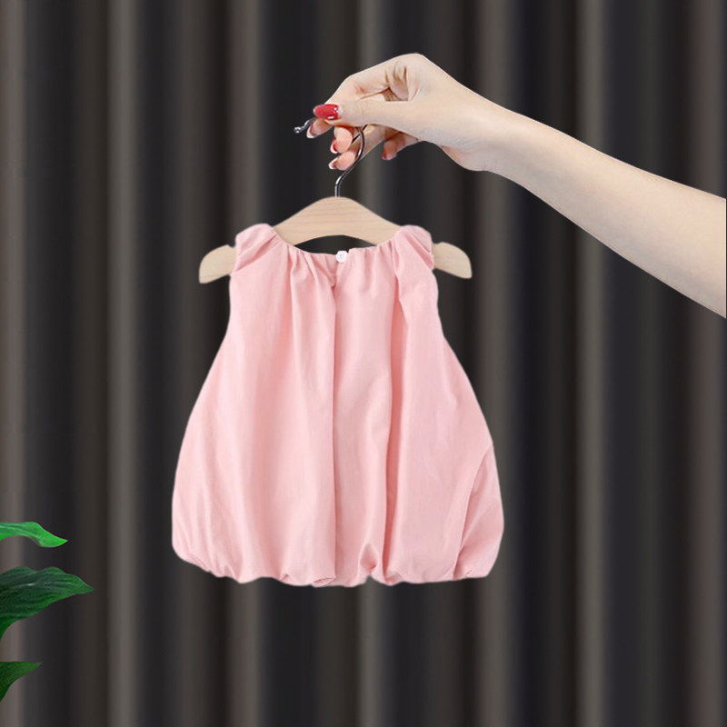女童连衣裙夏装新款宝宝夏季背心裙纯色花苞裙婴儿无袖甜美公主裙