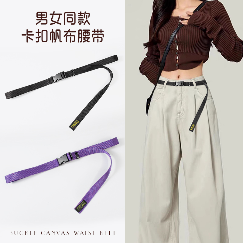 2cm无金属插扣帆布腰带 细窄款装饰裙子工装裤风衣布料儿童皮带女