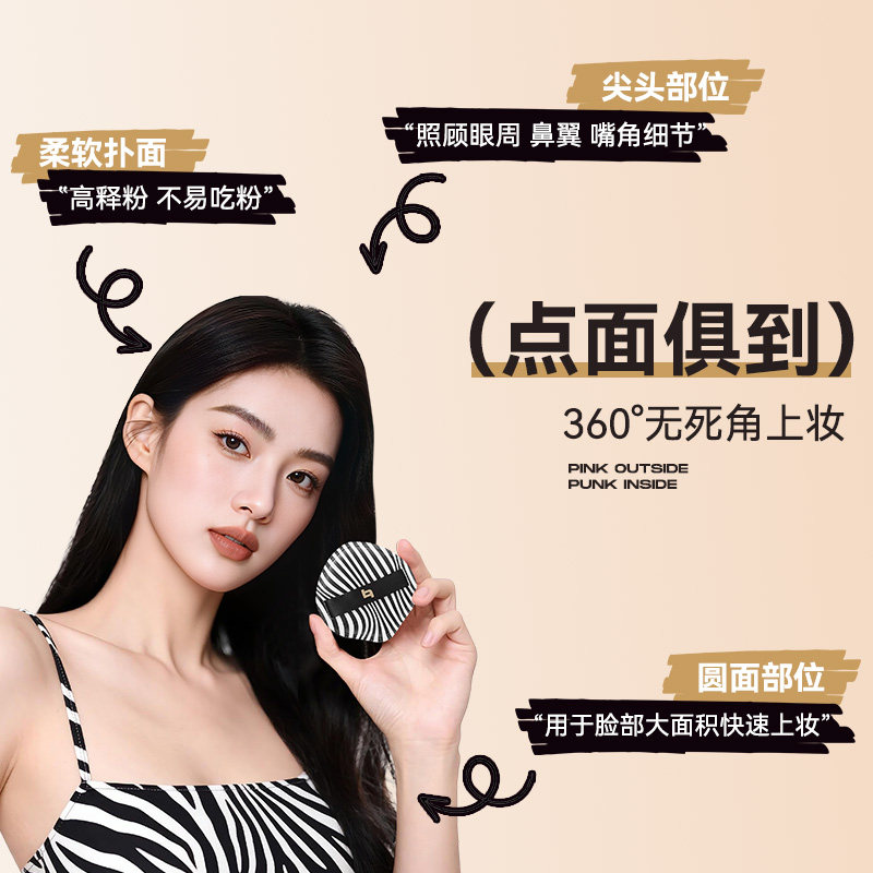 桃又野斑马粉扑套装不易吃粉干湿两用柔软上妆粉底液女新手友好