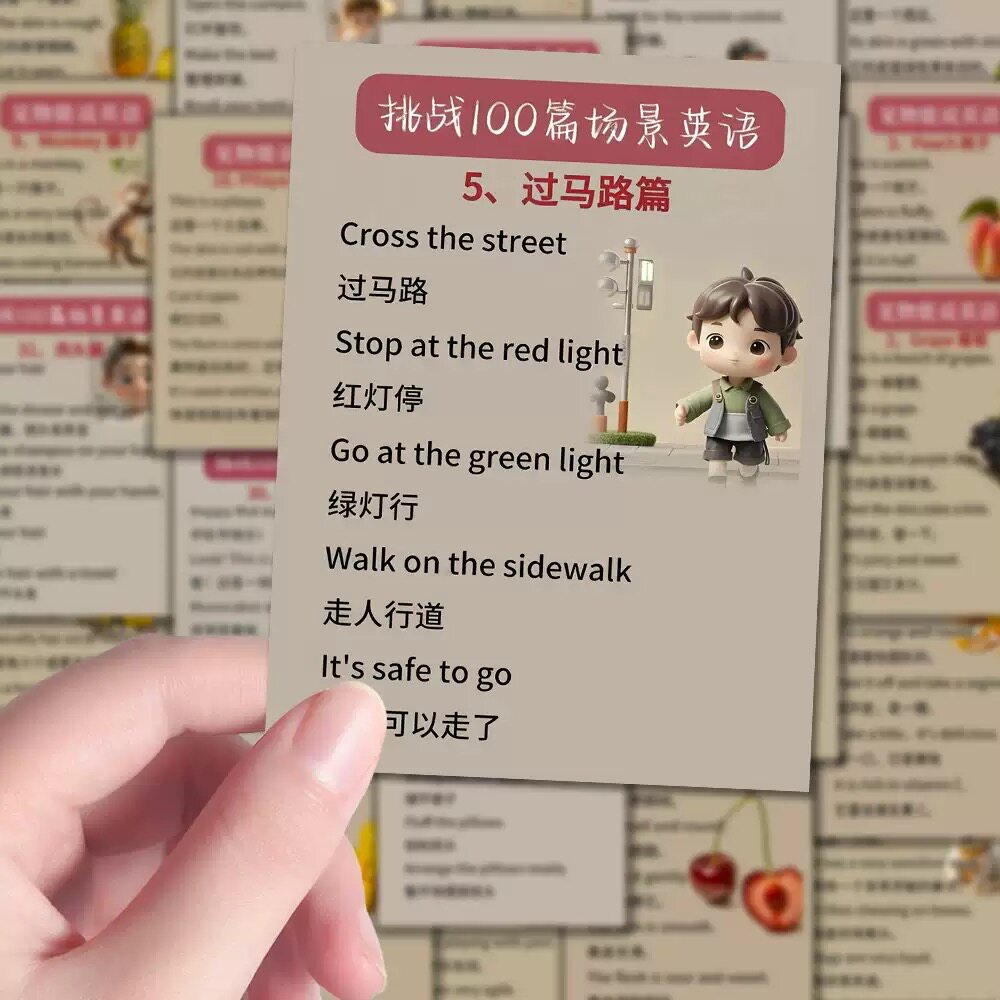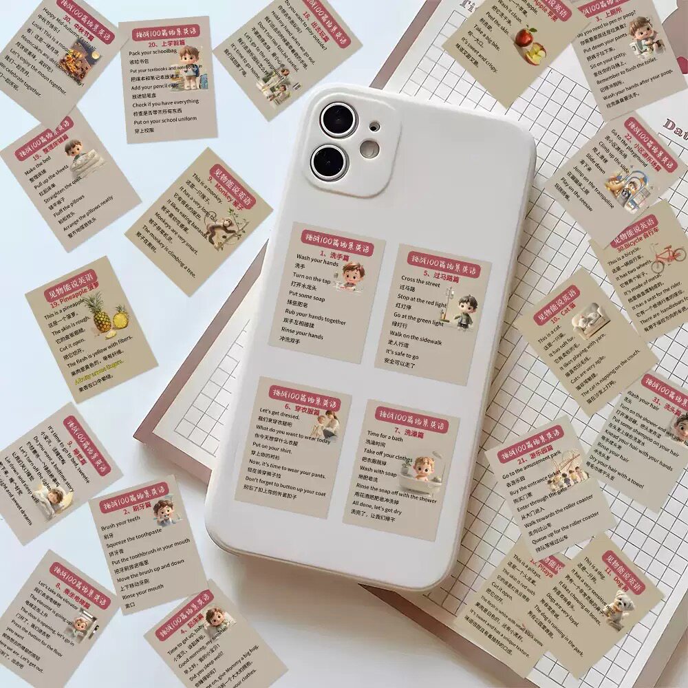 48张亲子场景英语口语小短句贴纸英语词汇学习笔记手账装饰贴画