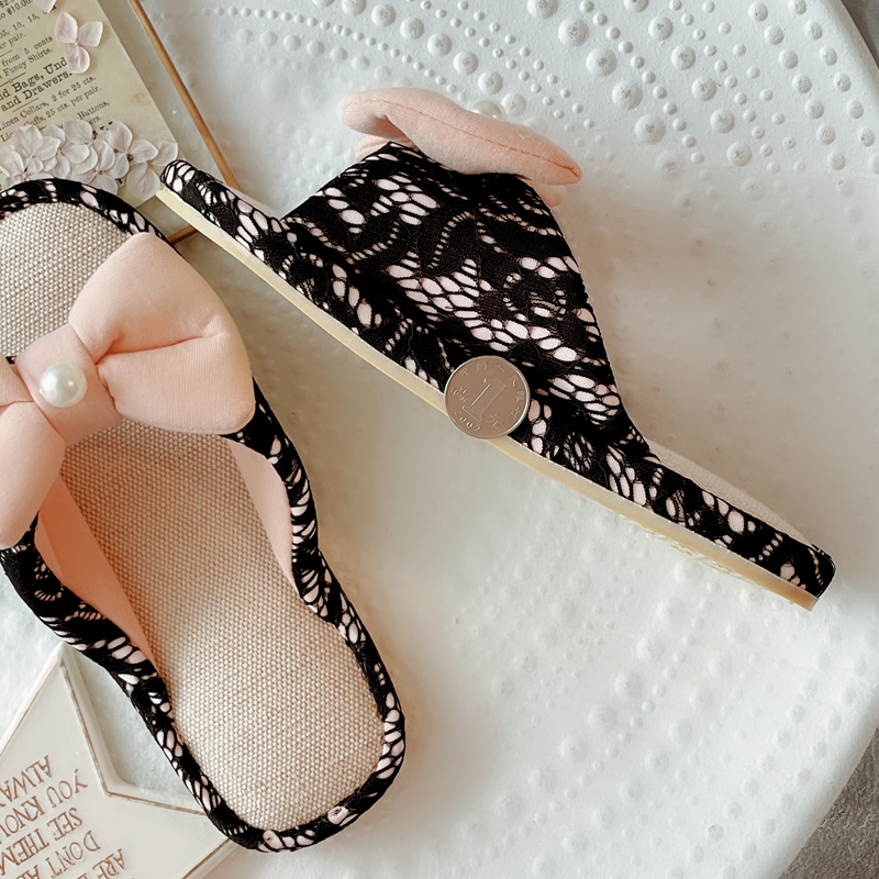少女心法式亚麻情侣家居凉拖鞋男款交叉春夏季室内防滑女士居家鞋