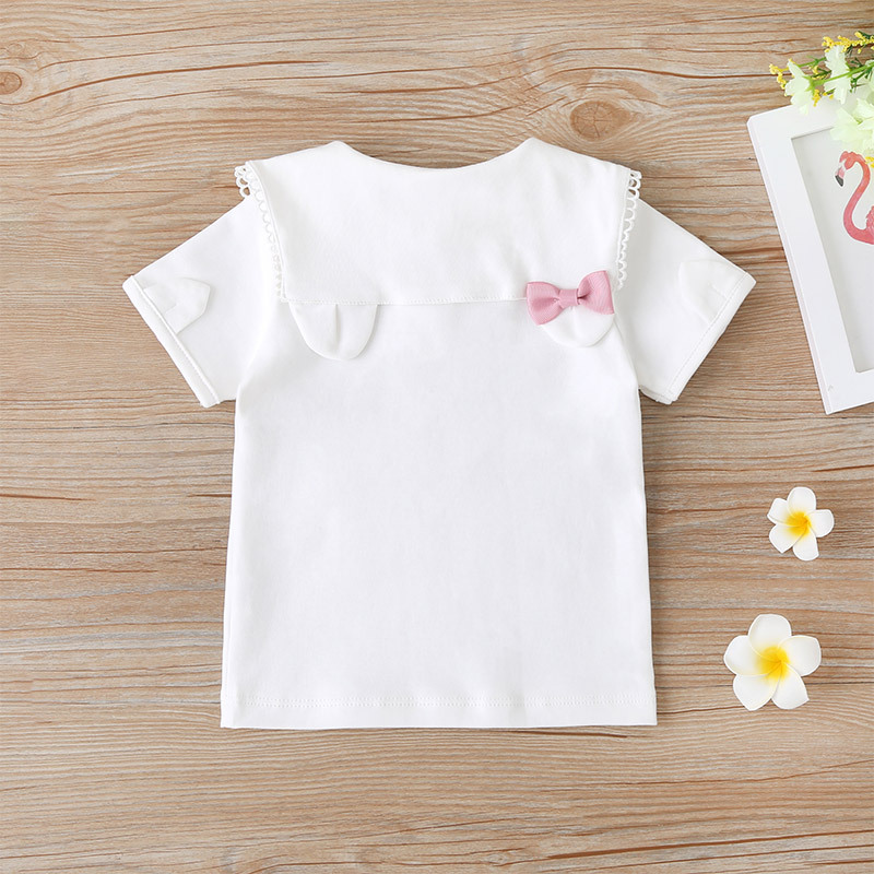 现货 ShirleyTemple st 日系同款女童纯色水手领蝴蝶结短袖T恤